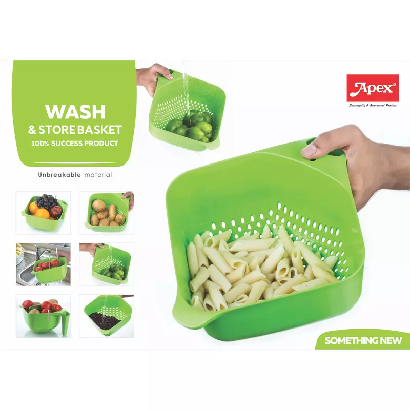 Introducing the Apex Multifunctional Wash & Store Basket Colander & Bowl, your ultimate kitchen companion for seamless food preparation and storage. Crafted from durable, unbreakable plastic, this innovative green bowl is designed to simplify your daily cooking routine. Experience the convenience of washing, straining, mixing, and storing all in one versatile unit. Its intelligent design ensures efficient drainage while serving as a sturdy mixing bowl or a secure storage container, making it an indispensable tool for every modern kitchen. Discover more essential kitchen tools in our Colanders & Food strainers selection.