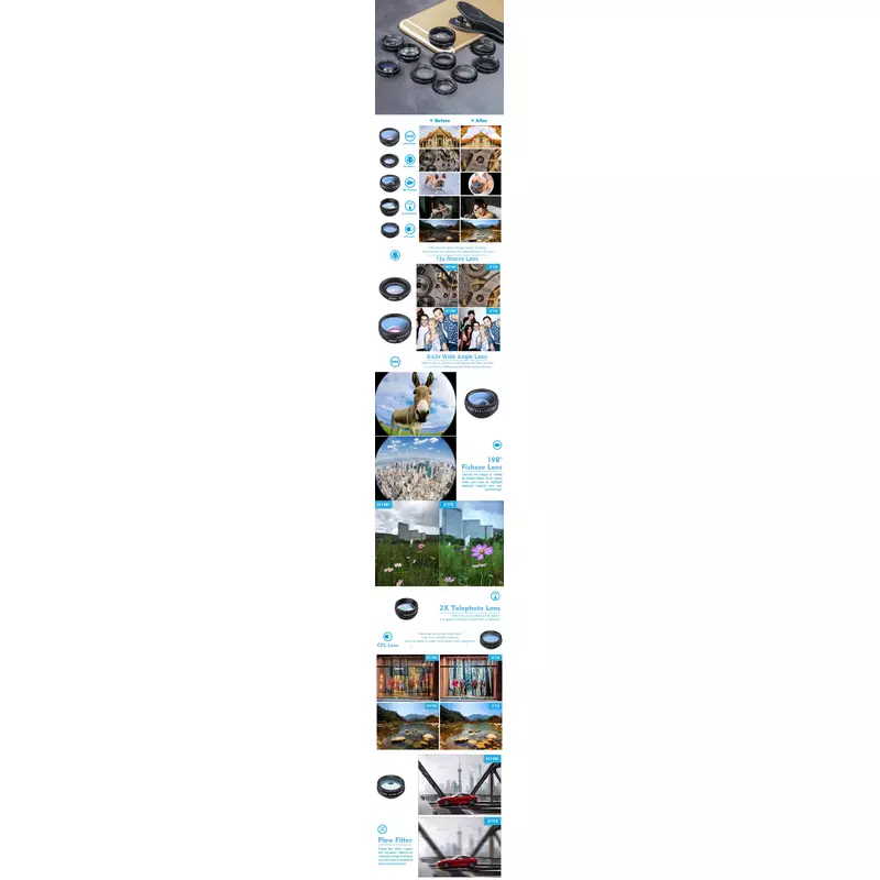 Apexel 10-in-1 Cell Phone Camera Lens Kit is designed for mobile photography enthusiasts and content creators who need to unlock unprecedented creative possibilities. Featuring a comprehensive suite of 10 versatile lenses and filters and universal compatibility with a sturdy detachable clip, this model ensures stunning, professional-grade photos and videos directly from your smartphone. Upgrade your setup today with Azzaman Household.
