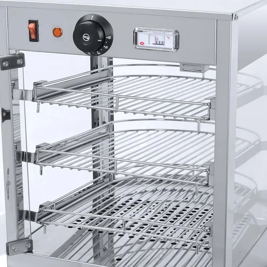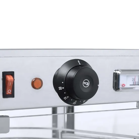 Elevate your food service experience with the Commercial 0.75KW Countertop Food Warmer Display. Designed for optimal warmth and presentation, this unit ensures your culinary offerings, from delectable pizzas and pastries to hearty breads, remain at their ideal serving temperature between 30-85°C. Its robust 0.75KW electric power and compact design (350x430x500mm) make it an indispensable asset for any commercial kitchen, bakery, or canteen. Discover this essential appliance and more premium Food Display Warmers and Refrigerators at Azzaman Household.