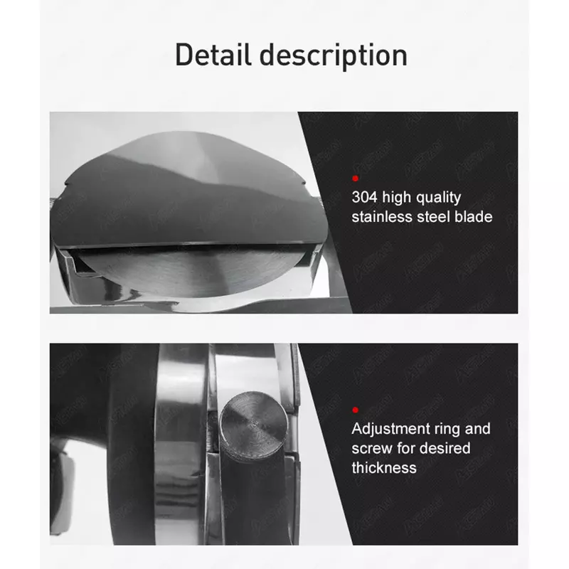 KS-100E Commercial Kebab Slicer with Ultra-Thin Slicing | 100mm Blade is designed for commercial kitchens and professional chefs who need precise, consistent kebab and gyro slicing. Featuring ultra-thin slicing capability and a powerful 80W motor with a durable 100mm stainless steel blade, this model ensures unmatched efficiency and perfectly uniform cuts. Upgrade your setup today with Azzaman Household.