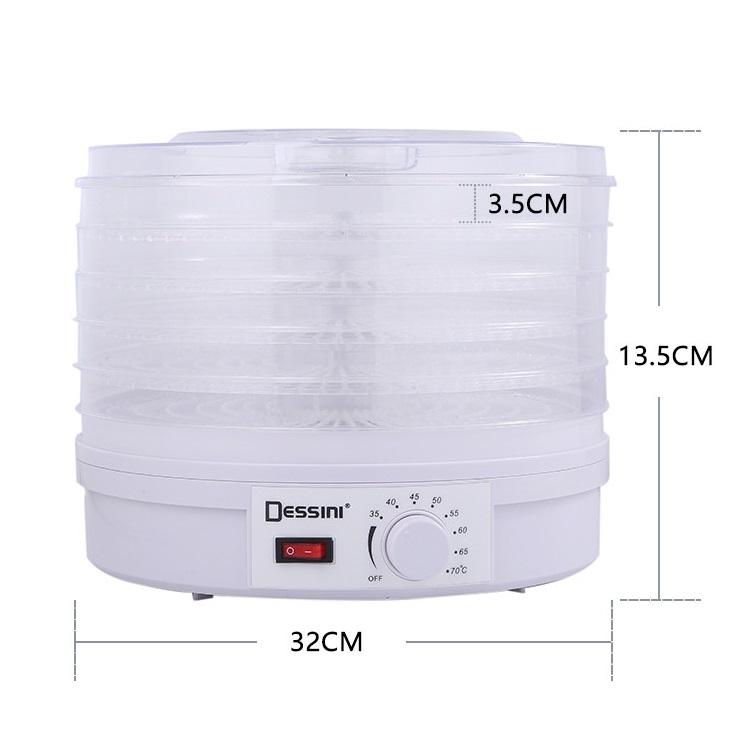 Transform your approach to healthy snacking and food preservation with the Dessini 5-Layer Food Dehydrator. Engineered for efficiency and ease of use, this powerful 350W appliance utilizes a sophisticated hot air circulation drying system complemented by a robust ventilation fan. This ensures every slice, from vibrant fruits to hearty vegetables and savory meats, dries evenly and thoroughly, locking in essential nutrients and natural flavors. Perfect for home kitchens, it also offers the durability and performance suitable for light commercial applications, making it a versatile addition to your range of Hotel Appliances or any professional setting requiring consistent food preparation.
