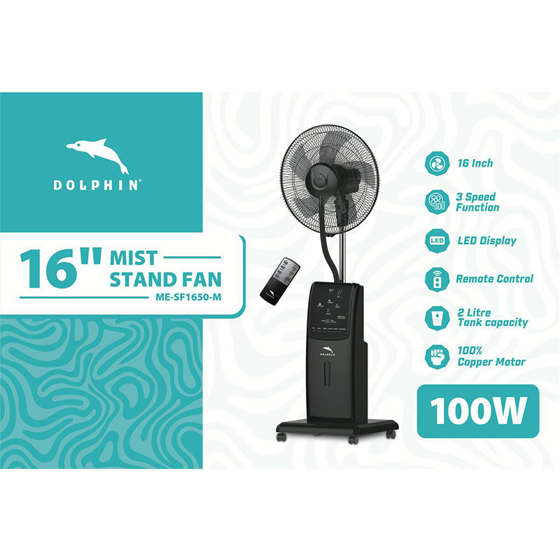 Dolphin 16 Inch Mist Fan | 2L 100W Remote 3 Speed is designed for businesses and homeowners who need powerful, widespread cooling across large indoor and outdoor areas. Featuring a generous 2-litre water tank and a robust 100W motor, this model ensures a refreshing mist combined with strong airflow. Upgrade your setup today with Azzaman Household.