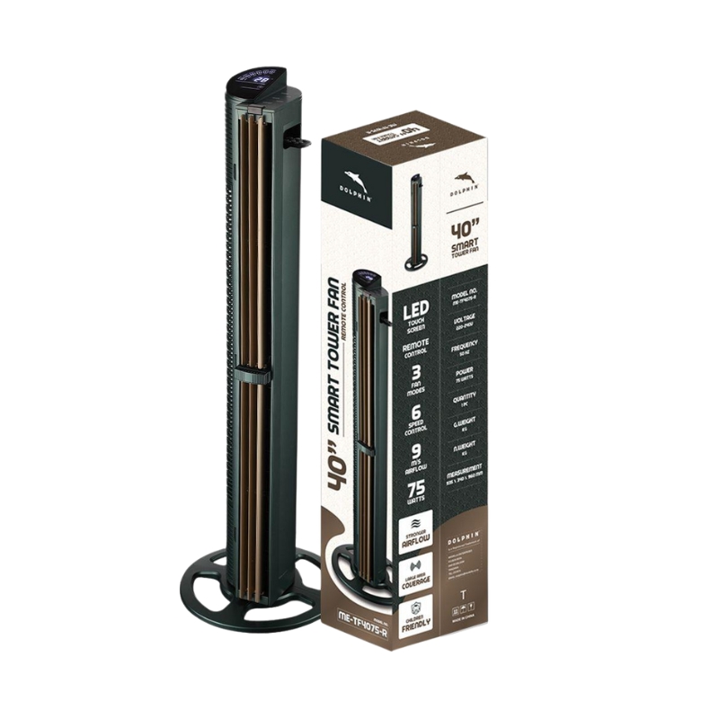 For those seeking a powerful, intelligent, and safe cooling solution, the Dolphin Smart Tower Fan 40” 75W stands out as an exceptional choice. Its combination of advanced features like LED touch control, remote operation, and multiple fan modes provides unparalleled convenience and customization. Whether you need a gentle breeze for sleep or strong airflow for a bustling room, this fan delivers with efficiency and style. Perfect for families, its child-friendly design ensures peace of mind. Find this cutting-edge appliance and explore more top-tier Fan options at Azzaman Household, your trusted partner for modern home solutions.
