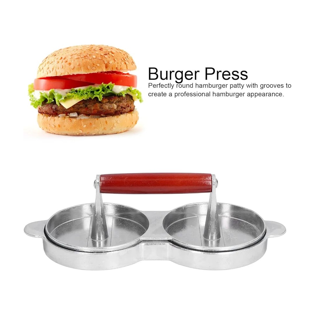 Azzaman Essentials Double 2-Pattie Burger Press is designed for home cooks and grill masters who need to create uniform, professional-looking burgers with ease. Featuring durable non-stick aluminum construction and an ergonomic wooden handle, this model ensures perfectly shaped patties every time. Upgrade your setup today with Azzaman Household.