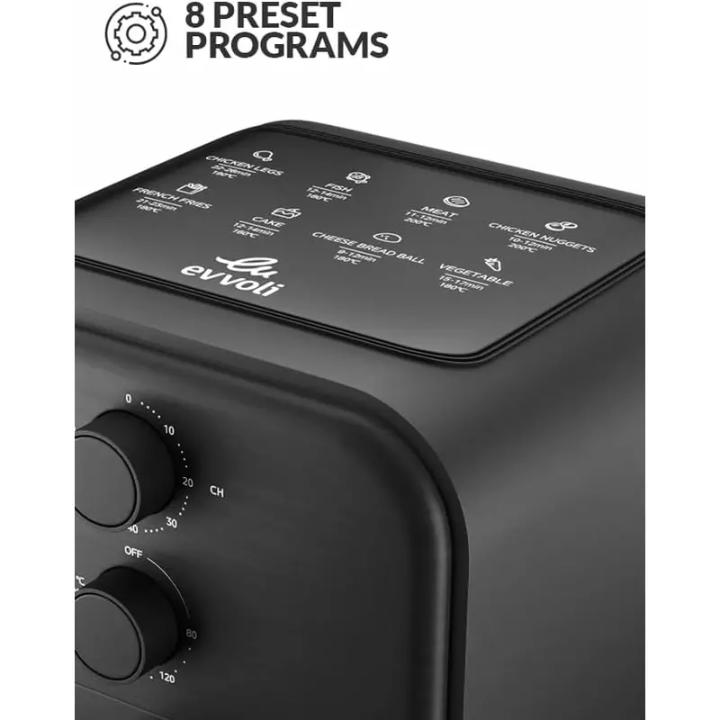 Transform your cooking experience with the Evvoli 3.8L Air Fryer, a powerful 1400W appliance designed for modern, health-conscious households. This versatile kitchen essential empowers you to enjoy your favorite fried, roasted, baked, and grilled foods with significantly less oil. Featuring an intuitive mechanical control system and 8 pre-set programs, preparing delicious meals is simpler than ever. The advanced Air Circulation System Technology ensures consistent heat and crispy results, making it an indispensable tool for anyone looking to embrace healthier eating without compromising on taste. Discover a world of culinary possibilities, from crispy fries to succulent chicken, all prepared effortlessly. Explore more innovative cooking solutions in our Air Fryer category.