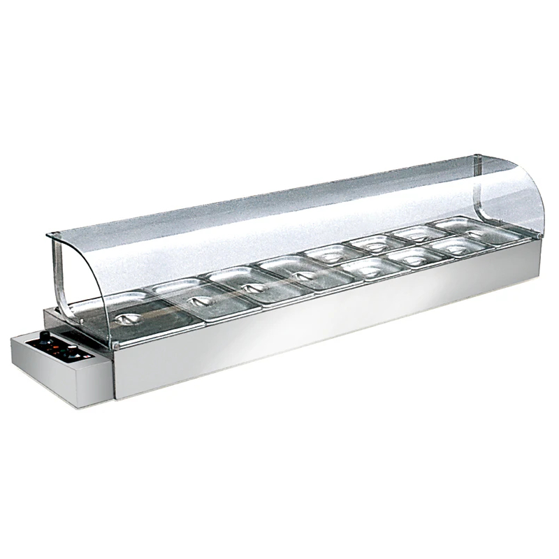 HBM-204 9-Pan High-Capacity Electric Bain Marie Table Top is designed for commercial kitchens, buffets, and catering services who need efficient large-scale food warming. Featuring 9 x 1/3 GN pan capacity and 1.8KW powerful heating, this model ensures consistent temperatures and optimal food quality. Upgrade your setup today with Azzaman Household.