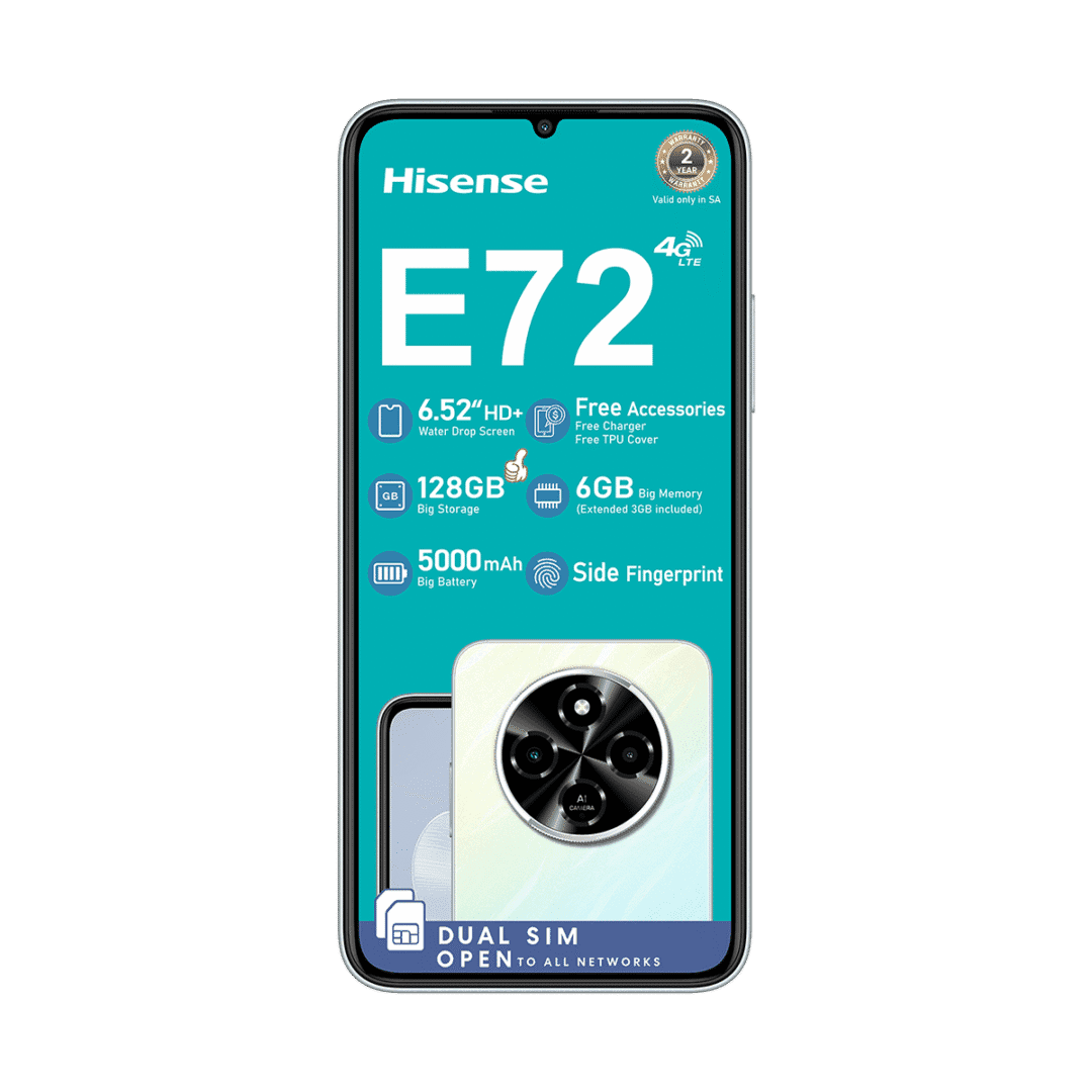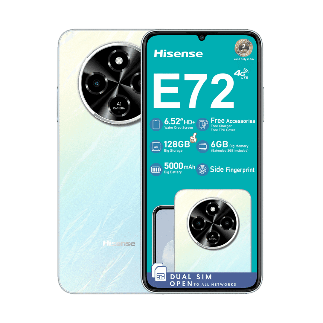 Discover a world of limitless possibilities with the Hisense E72 Smartphone 128GB ROM + 3GB RAM, engineered to elevate your daily mobile interactions. Boasting an expansive 6.75-inch HD+ display, it delivers vibrant visuals and edge-to-edge clarity, perfect for immersing yourself in streaming, browsing, or gaming. Running on a smooth Android operating system, the Hisense E72 is optimized for efficiency and responsiveness, ensuring a fluid user experience whether you’re a multi-tasking professional or an avid mobile gamer. Under the hood, a robust 64MP main camera, 8MP front camera, and a long-lasting 5000mAh battery power your adventures, complemented by 128GB of internal storage and a total of 6GB RAM (including 3GB extended RAM) for seamless multitasking and effortless performance. Explore our full range of Mobile Phones.