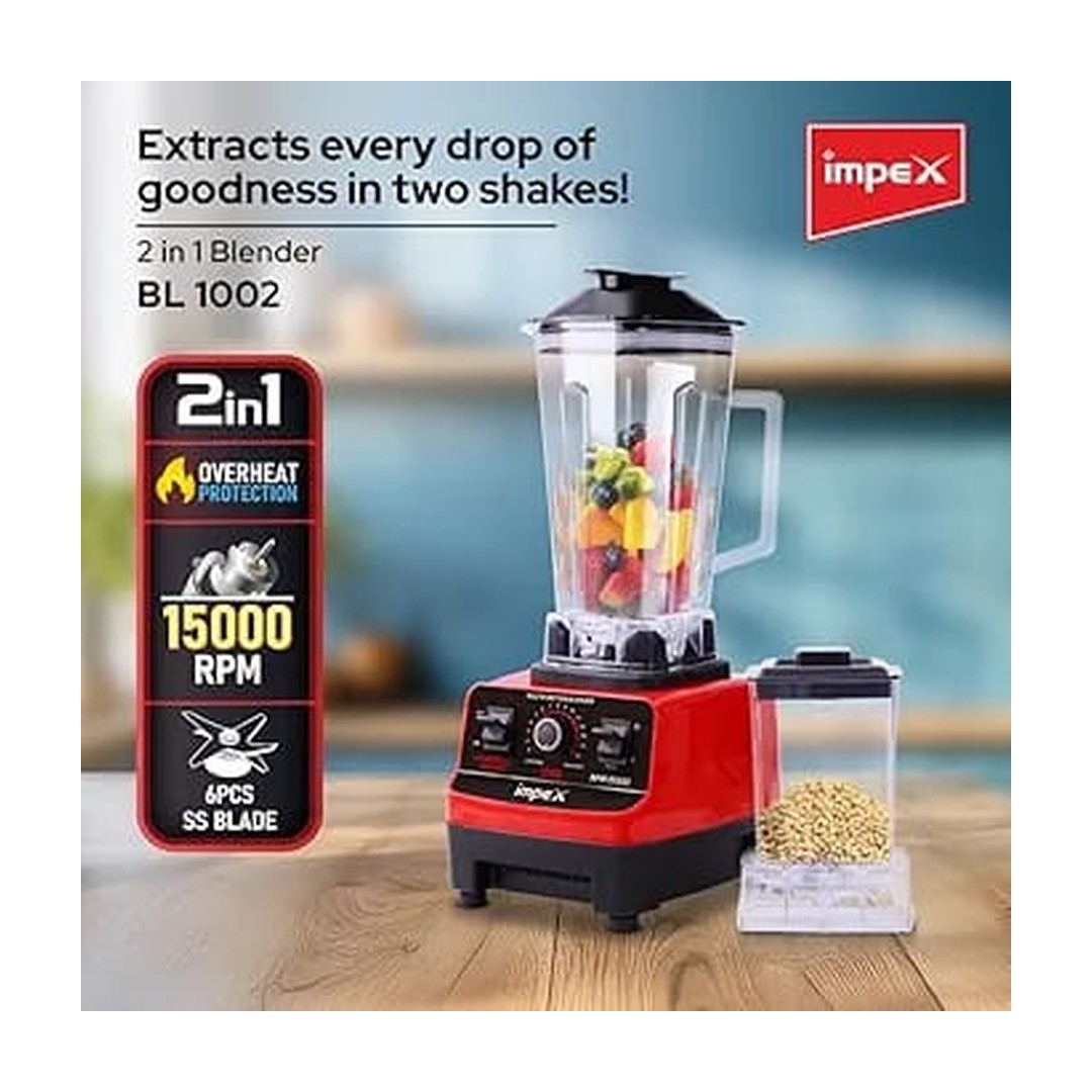 For home cooks, health enthusiasts, and anyone seeking efficiency and versatility in their kitchen, the Impex 2-in-1 Blender & Grinder 1500W is the ideal choice. Its powerful motor, dual-jar functionality, and advanced blade system simplify meal preparation, allowing you to create a vast array of dishes with precision and speed. With robust safety features and durable construction, this appliance promises reliability and convenience for daily use. Upgrade your kitchen today and experience the difference by purchasing from Azzaman Household – your trusted source for quality home appliances.