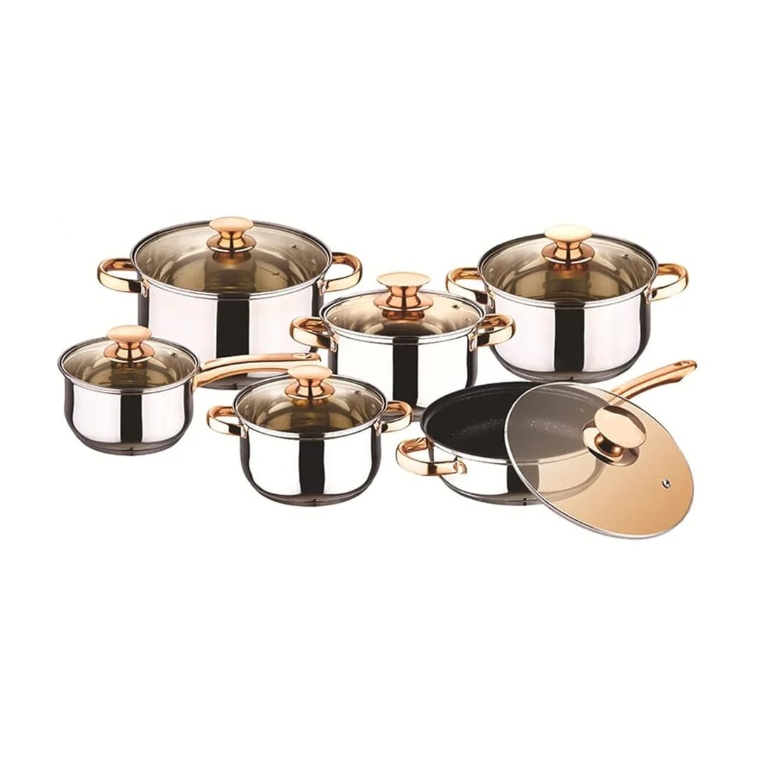 The Kaisa Villa 12-Piece Stainless Steel Induction Bottom Cookware Set | For All Stovetops is designed for modern home chefs and culinary enthusiasts who need versatile, durable, and efficient cooking tools. Featuring 100% food-grade stainless steel construction and an induction bottom for universal compatibility, this model ensures an elevated culinary experience with both style and performance. Upgrade your setup today with Azzaman Household.