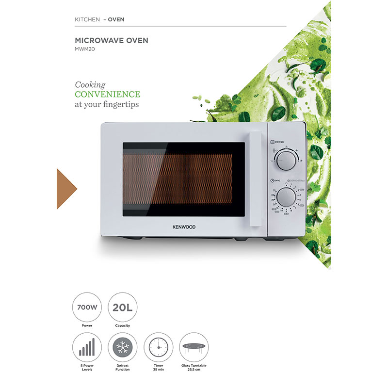 Kenwood MWM20.000WH 20L Manual Microwave is designed for busy individuals who need quick and easy meal preparation. Featuring 700W power and a 20L capacity, this model ensures efficient cooking and thawing. Upgrade your setup today with Azzaman Household.