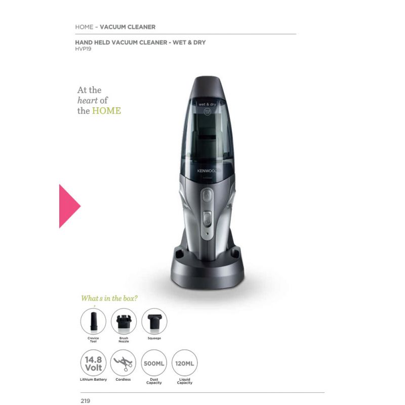 Kenwood Wet & Dry Cordless Handheld Vacuum Cleaner is designed for homeowners, office managers, and car owners who need efficient, versatile cleaning. Featuring a powerful 14.8V Lithium-Ion Battery and wet & dry capabilities with a 500ml dust and 120ml liquid capacity, this model ensures quick and thorough clean-ups. Upgrade your setup today with Azzaman Household.