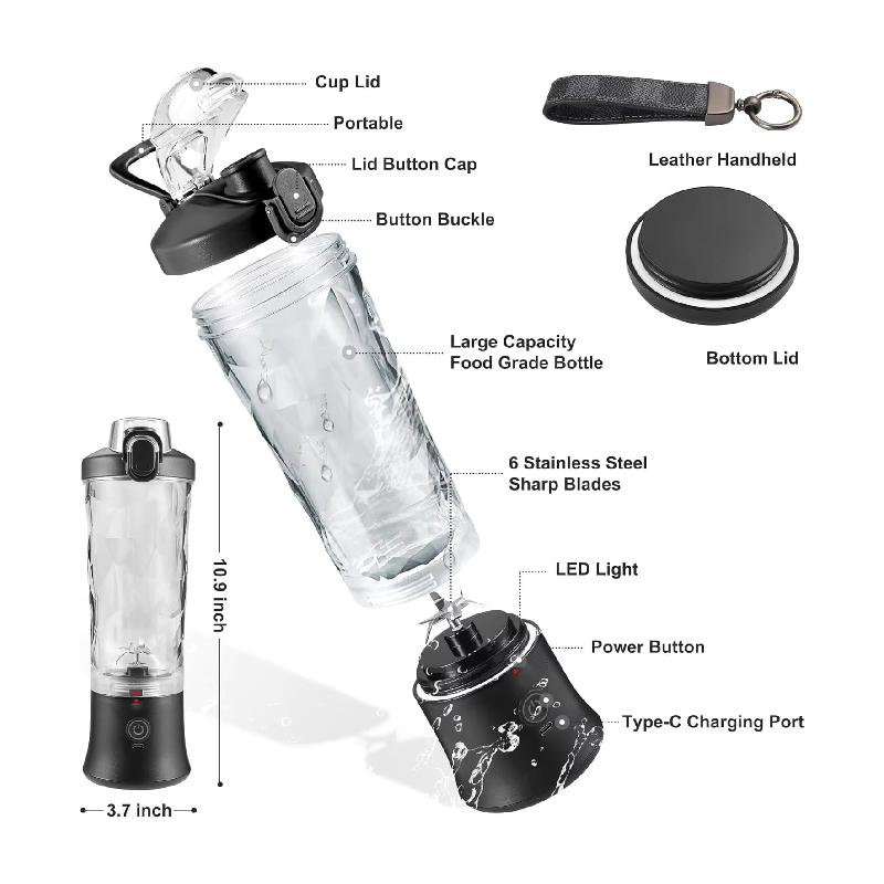 The Kodtec 600ml Rechargeable Portable Blender is designed for health-conscious individuals and busy travelers who need quick, nutritious drinks on the go. Featuring powerful 6-leaf blades and a long-lasting 4000mAh battery, this model ensures perfectly blended smoothies and shakes anytime, anywhere. Upgrade your setup today with Azzaman Household.