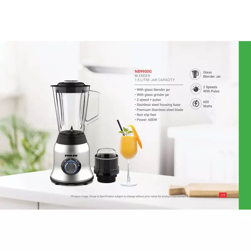 Experience culinary convenience like never before with the Nikai 1.5L Blender & Dry Grinder NB9900G. This powerful 600W appliance is engineered to tackle all your blending and grinding needs, from silky-smooth smoothies to finely ground spices. Its robust motor and premium stainless steel blades ensure efficient performance, while the dual glass jars offer separate solutions for wet and dry ingredients. Prepare healthy beverages, delicious sauces, and aromatic spices with unparalleled ease, making every meal preparation a joy. Discover more high-quality Blenders and small appliances at Azzaman Household.