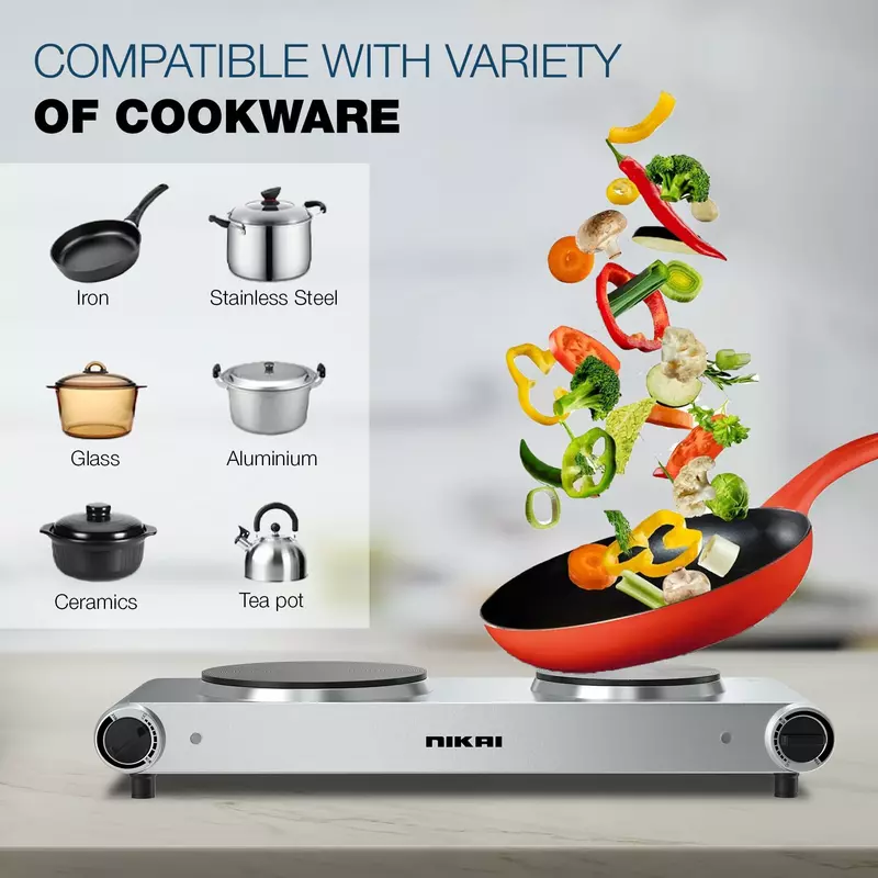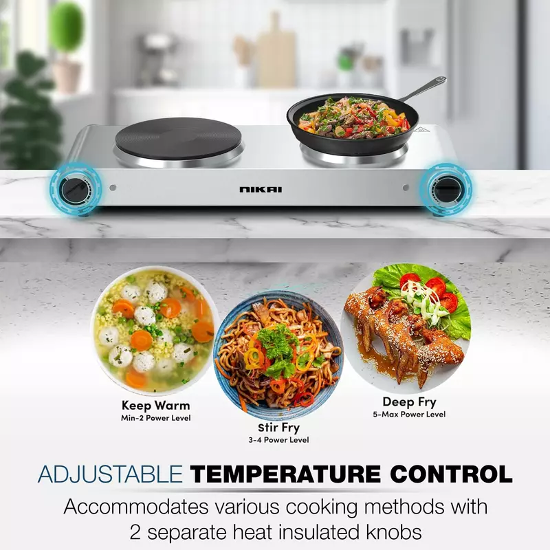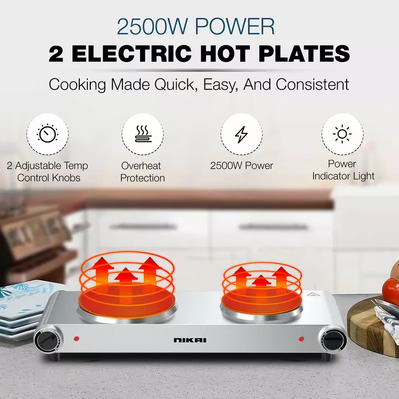 Nikai 2500W Double Hot Plate is designed for home cooks and small households who need versatile and efficient cooking solutions. Featuring a powerful 2500W output and an advanced Overheat Protection System, this model ensures safe and precise culinary results. Upgrade your setup today with Azzaman Household.