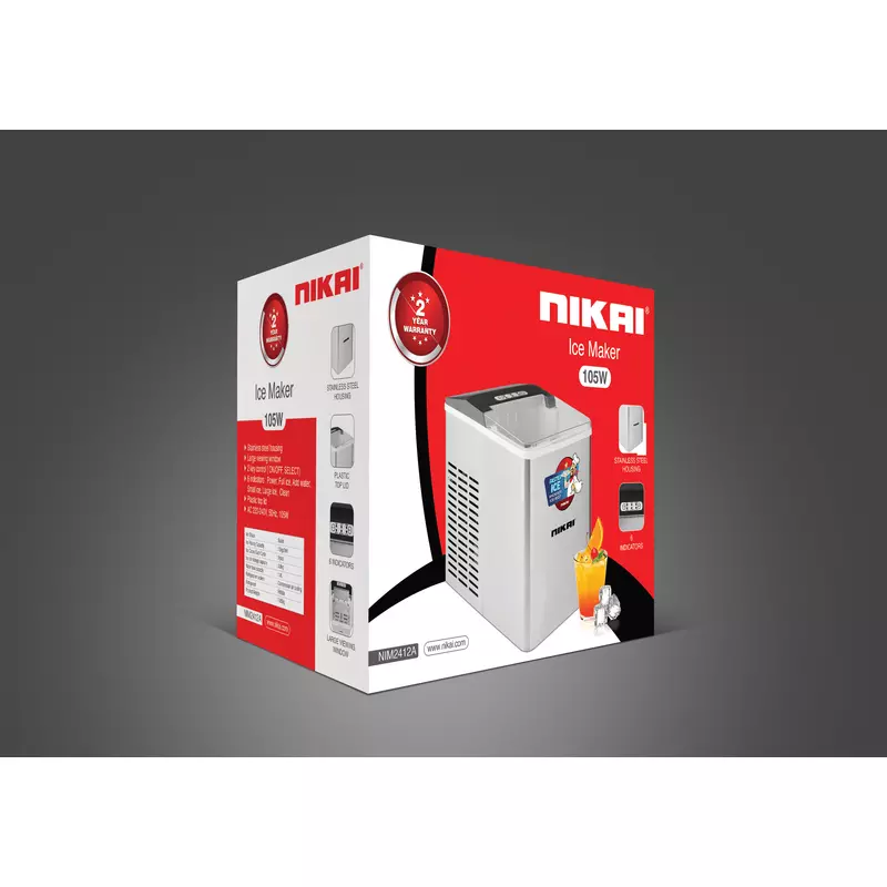 The Nikai NIM2412A Ice Maker is the ideal solution for anyone seeking convenience, efficiency, and a constant supply of fresh ice. Its robust design, rapid production capabilities, and user-friendly features make it perfect for entertaining guests, enhancing daily beverages, or supporting small commercial needs. With its intelligent indicators and elegant stainless steel finish, it blends seamlessly into any modern setting. Choose the Nikai NIM2412A for reliable performance and superior ice quality, exclusively from Azzaman Household.
