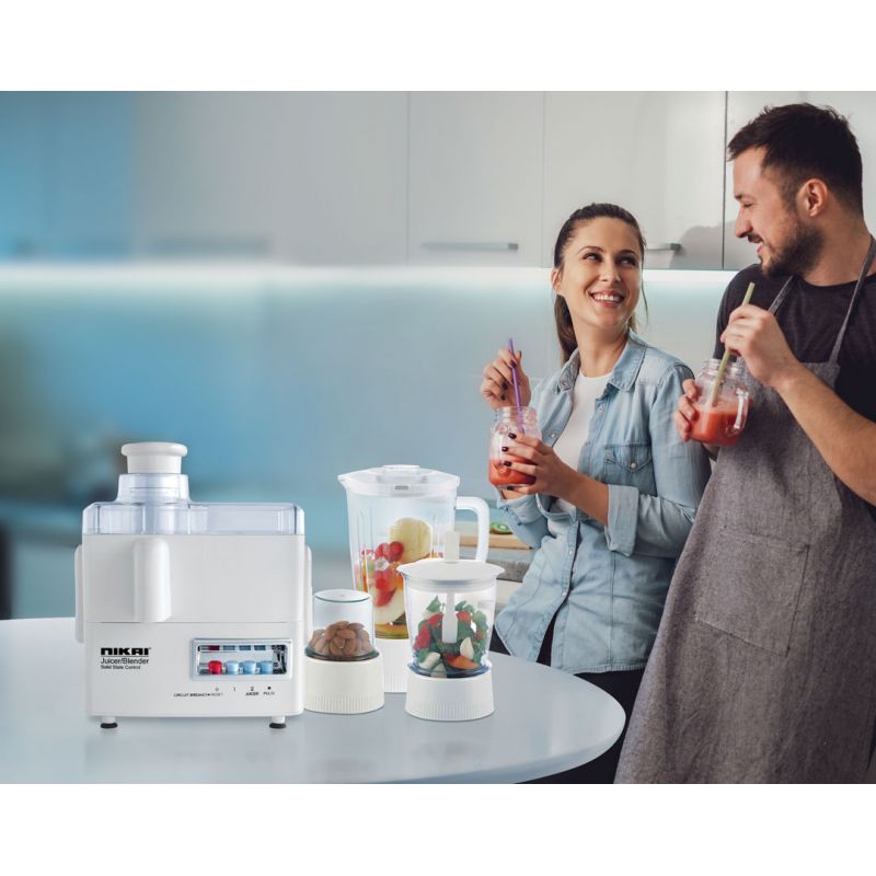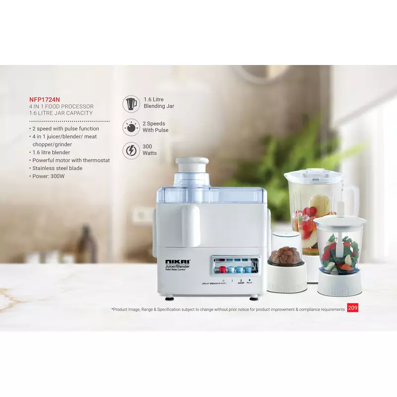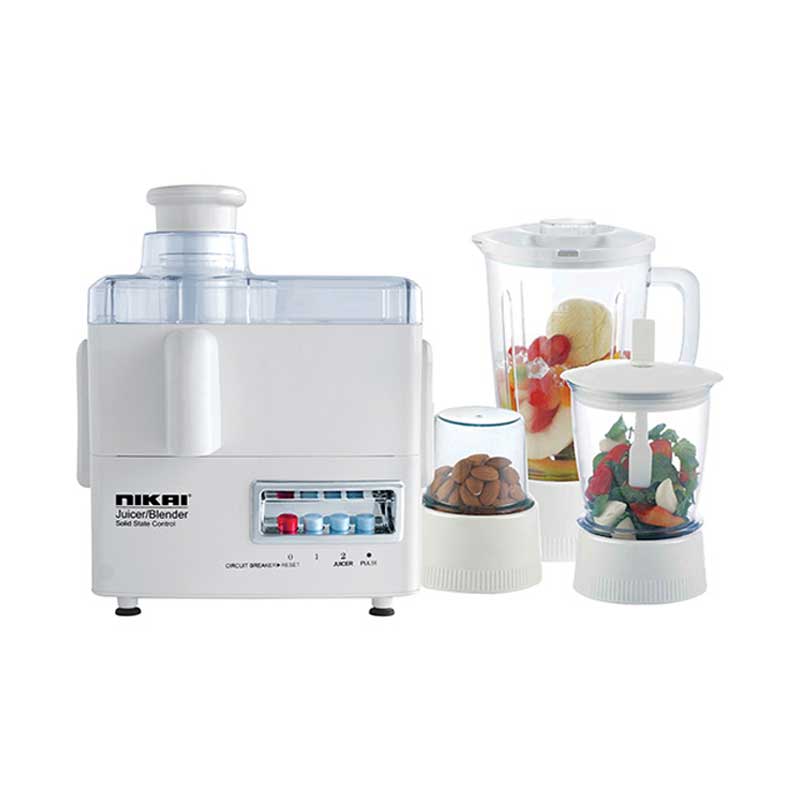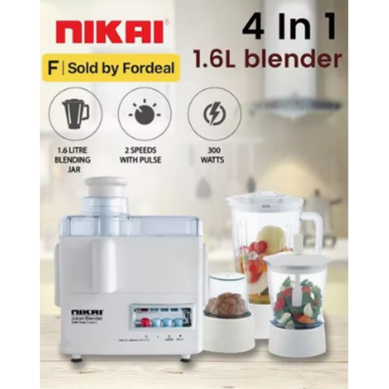 Nikai 1.6L 4-in-1 Juicer Extractor is designed for busy households and culinary enthusiasts who need a versatile and time-saving kitchen companion. Featuring comprehensive 4-in-1 functionality (juicer, blender, meat chopper, grinder) and a powerful 300W motor, this model ensures efficient and effortless food preparation. Upgrade your setup today with Azzaman Household.