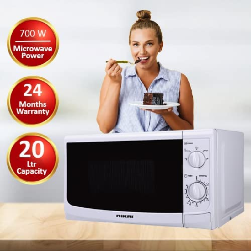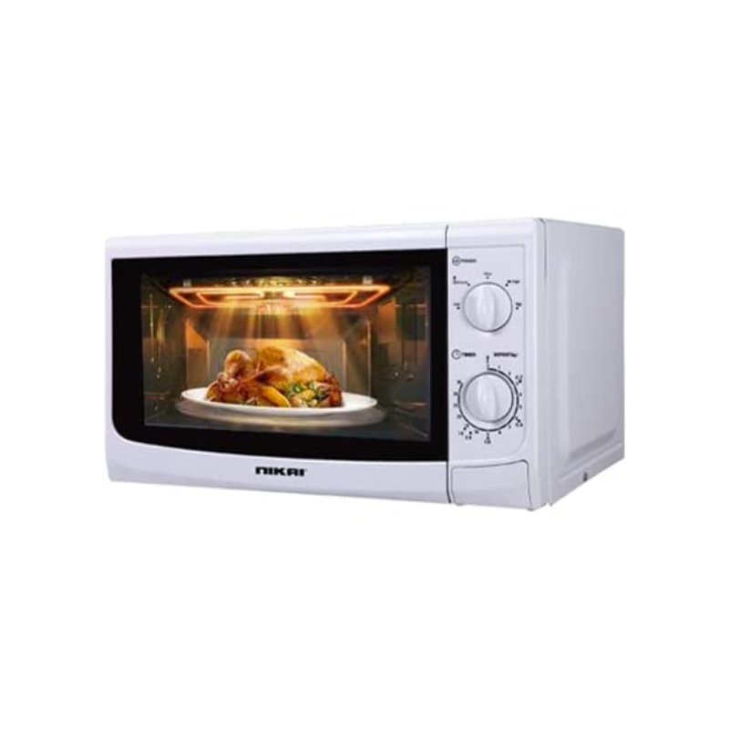 Nikai 20L Manual Microwave is designed for busy individuals and small families who need effortless meal preparation. Featuring a generous 20L capacity and efficient 700W power, this model ensures quick and perfectly heated dishes every time. Upgrade your setup today with Azzaman Household.