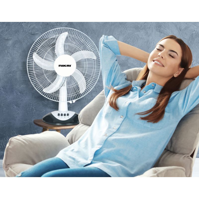 The Nikai 16″ High Performance Table Fan is designed for individuals and small spaces who need efficient and customizable personal cooling. Featuring a 41W high-performance copper motor and wide-angle horizontal oscillation, this model ensures powerful, refreshing airflow exactly where you need it. Upgrade your setup today with Azzaman Household.
