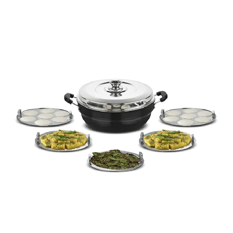 • 2x Idli Plates, 2x Dhokla Plates, 1x Patra Steamer Plate