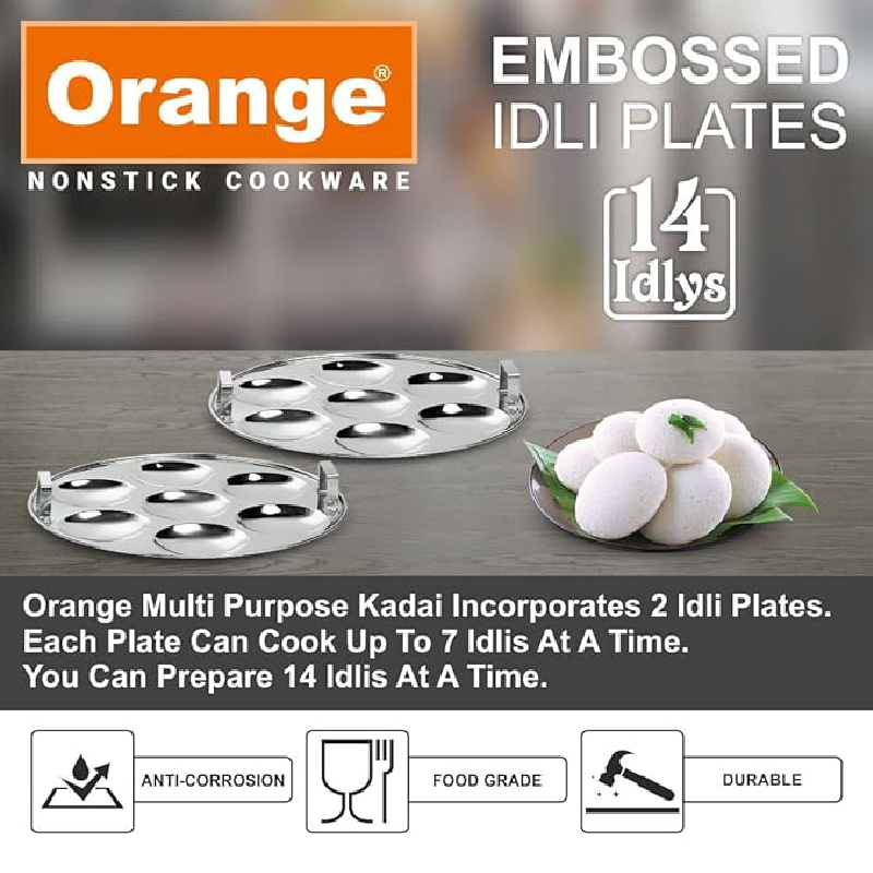 Orange All-in-One Multi Kadai with Idli, Dhokla & Patra Steamer Plates: Your Ultimate Kitchen Companion for Steaming Delights!