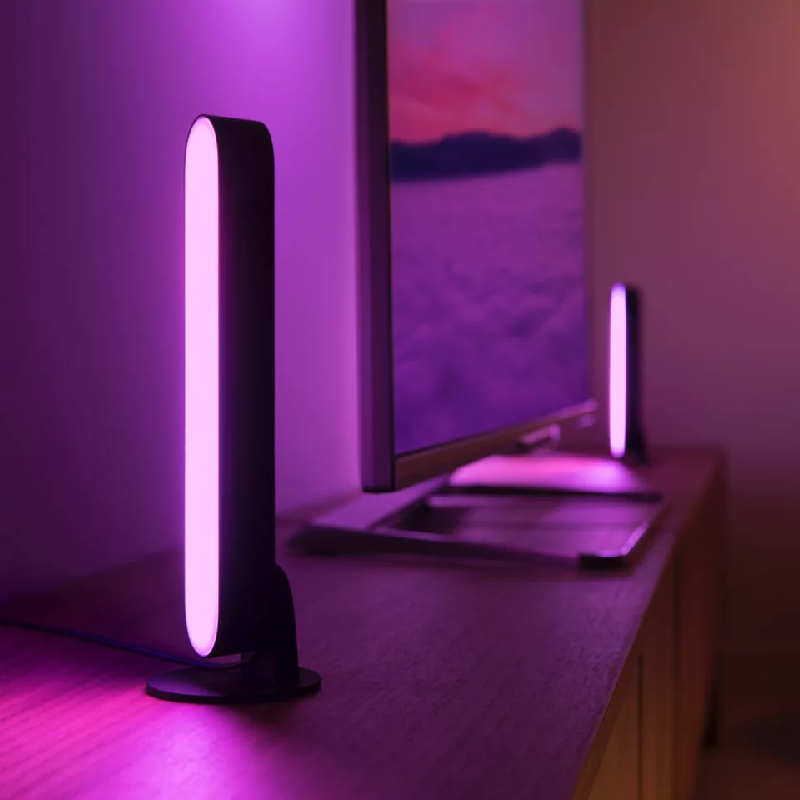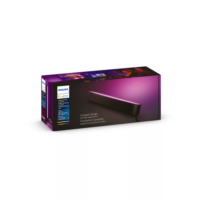 The Philips Hue Ambient Play Smart LED Light Bar redefines your home entertainment. With its sleek black design, this versatile light bar creates an immersive wash of colorful smart light, transforming any living room or bedroom into a dynamic experience. Easily integrate it into your existing setup; the included power supply can connect up to three light bars, offering flexibility and scalability. Control is intuitive and seamless, whether you prefer the comprehensive Philips Hue app (compatible with Android 10.0+ and iOS 16 or later), voice commands, or smart switches. This smart light bar utilizes both Bluetooth and Zigbee communication protocols, ensuring robust connectivity and compatibility within your smart home ecosystem, even working without Wi-Fi for basic functions.