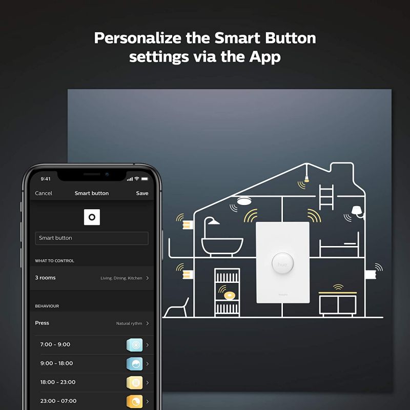 The Philips Hue Smart Button seamlessly integrates convenience and advanced smart home automation into your existing Hue ecosystem. Designed to simplify your daily interactions with light, this versatile button can be effortlessly paired with any Philips Hue smart light, allowing you to control individual bulbs, groups of lights, or even entire rooms across your home. Experience complete command with full dimming and brightening technology, ensuring you can always light your way with a simple press, even if your phone isn’t at hand. The true power lies in its programmability: use the intuitive Philips Hue App to assign the Smart Button to trigger specific preset scenes or activate the innovative “natural light” setting, which dynamically adjusts lighting throughout the day. Simplify your life through intelligent automation, configuring custom “smart automations” that tailor your lighting to your personal needs and preferences. This smart light switch is far more than a simple toggle; it’s a gateway to getting the most out of your Philips Hue smart lighting system. Please note: this product requires the ‘Philips Hue Bridge’ (sold separately) for initial setup and full functionality. Explore more smart solutions, including Smart switches, at Azzaman Household.