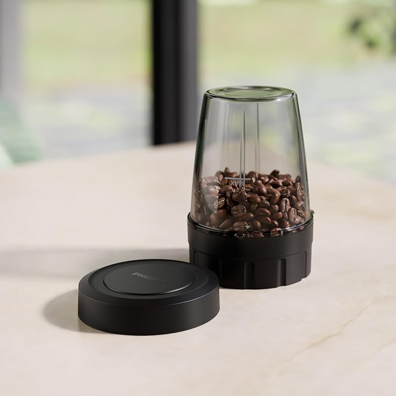 • Dedicated Coffee & Spice Grinder: Enjoy the luxury of freshly ground coffee and spices at home with the included 300ml cup featuring a flat 2-star blade, perfect for instant use or convenient storage with its airtight lid.