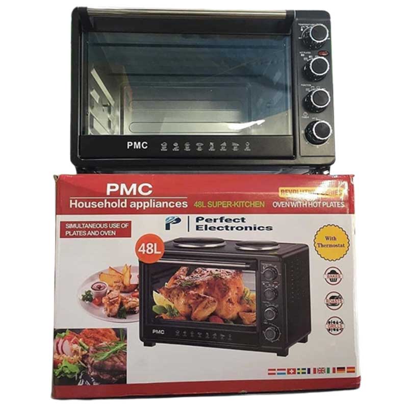 PMC 48L Electric Oven | 2 Hot Plates is designed for home cooks and small households who need versatile and efficient meal preparation. Featuring a generous 48L capacity and two integrated hot plates, this model ensures convenient baking, roasting, grilling, and stovetop cooking. Upgrade your setup today with Azzaman Household.