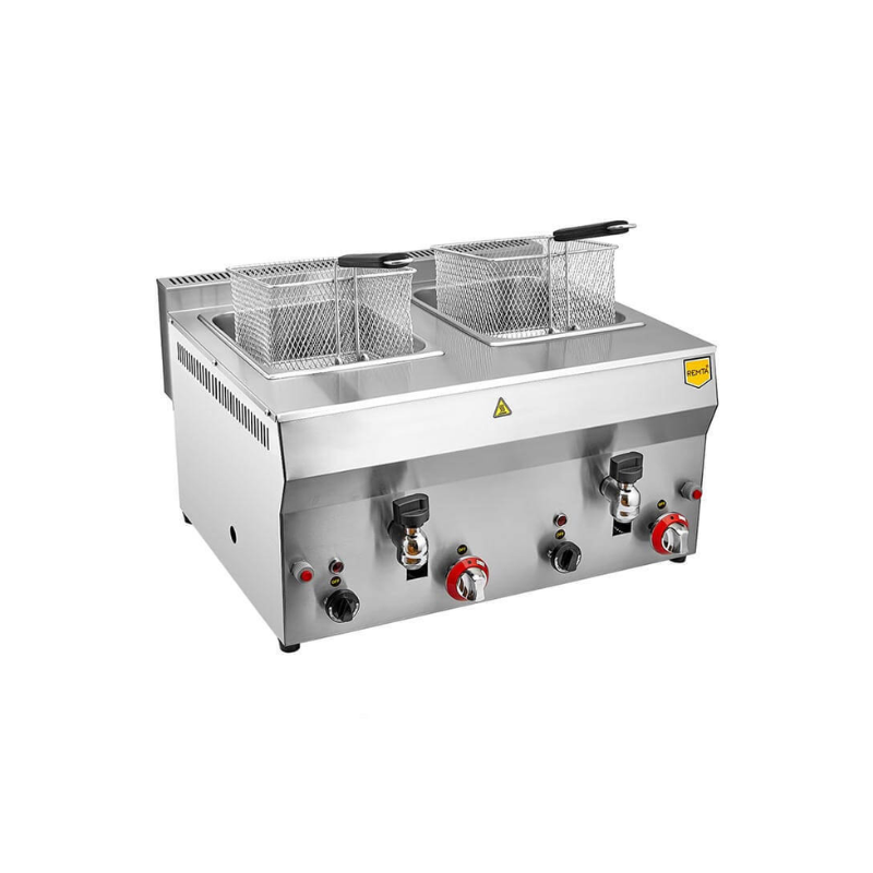Remta Double Tank Gas Fryer 8+8L | Automatic Thermostat, 12kW is designed for demanding commercial kitchens and food service professionals who need efficient, high-volume frying. Featuring a powerful 12kW total gas power and dual 8+8L tanks, this model ensures rapid heating and versatile cooking. Upgrade your setup today with Azzaman Household.