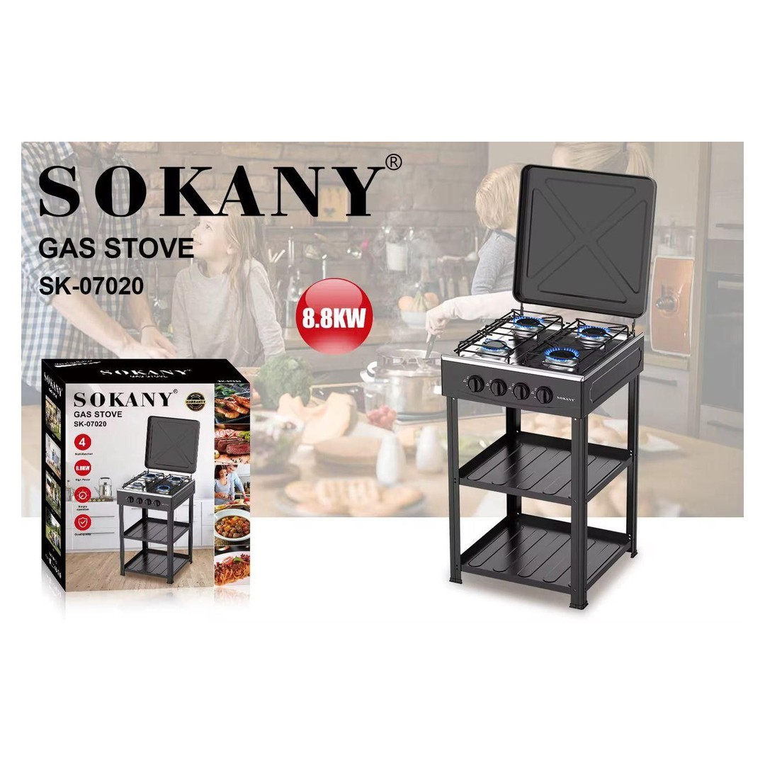 Sokany 4-Burner Standing Gas Cooker is designed for home chefs and outdoor enthusiasts who need efficient, organized, and versatile cooking. Featuring four high-efficiency gas burners and two built-in storage shelves, this model ensures seamless meal preparation and a clutter-free cooking area. Upgrade your setup today with Azzaman Household.