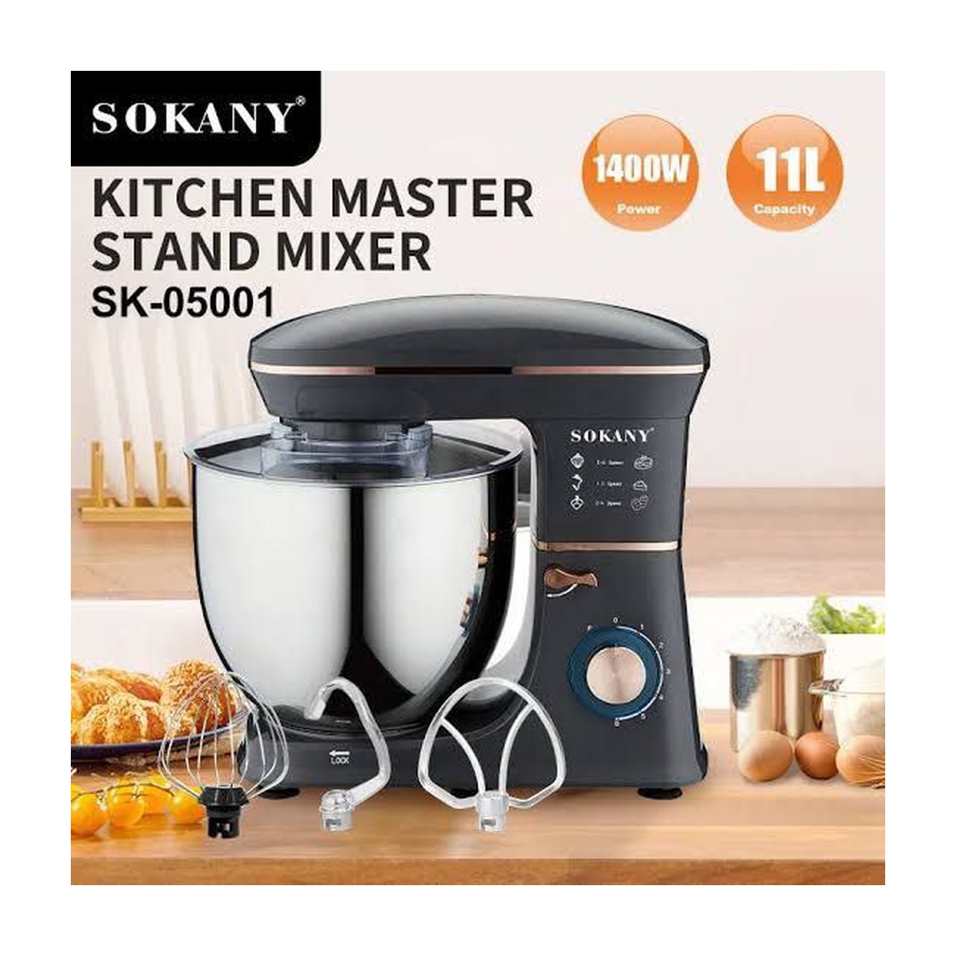 Sokany 11L Kitchen Master Stand Mixer is designed for passionate bakers and professional chefs who need effortless mixing, kneading, and whisking. Featuring a robust 1400W motor and a massive 11L stainless steel bowl, this model ensures perfect results every time. Upgrade your setup today with Azzaman Household.