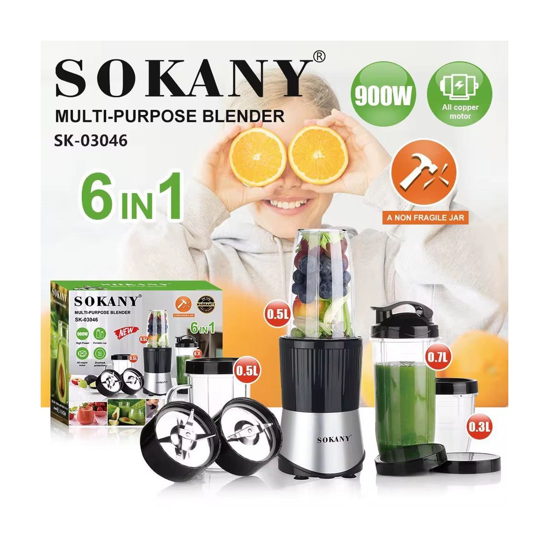 Sokany 6-in-1 Multi-Purpose Blender | 900W All-Copper Motor is designed for busy individuals and home cooks who need unparalleled versatility and powerful performance. Featuring a robust 900W all-copper motor and 6-in-1 multi-purpose functionality, this model ensures it effortlessly handles all your blending, grinding, and juicing needs. Upgrade your setup today with Azzaman Household.