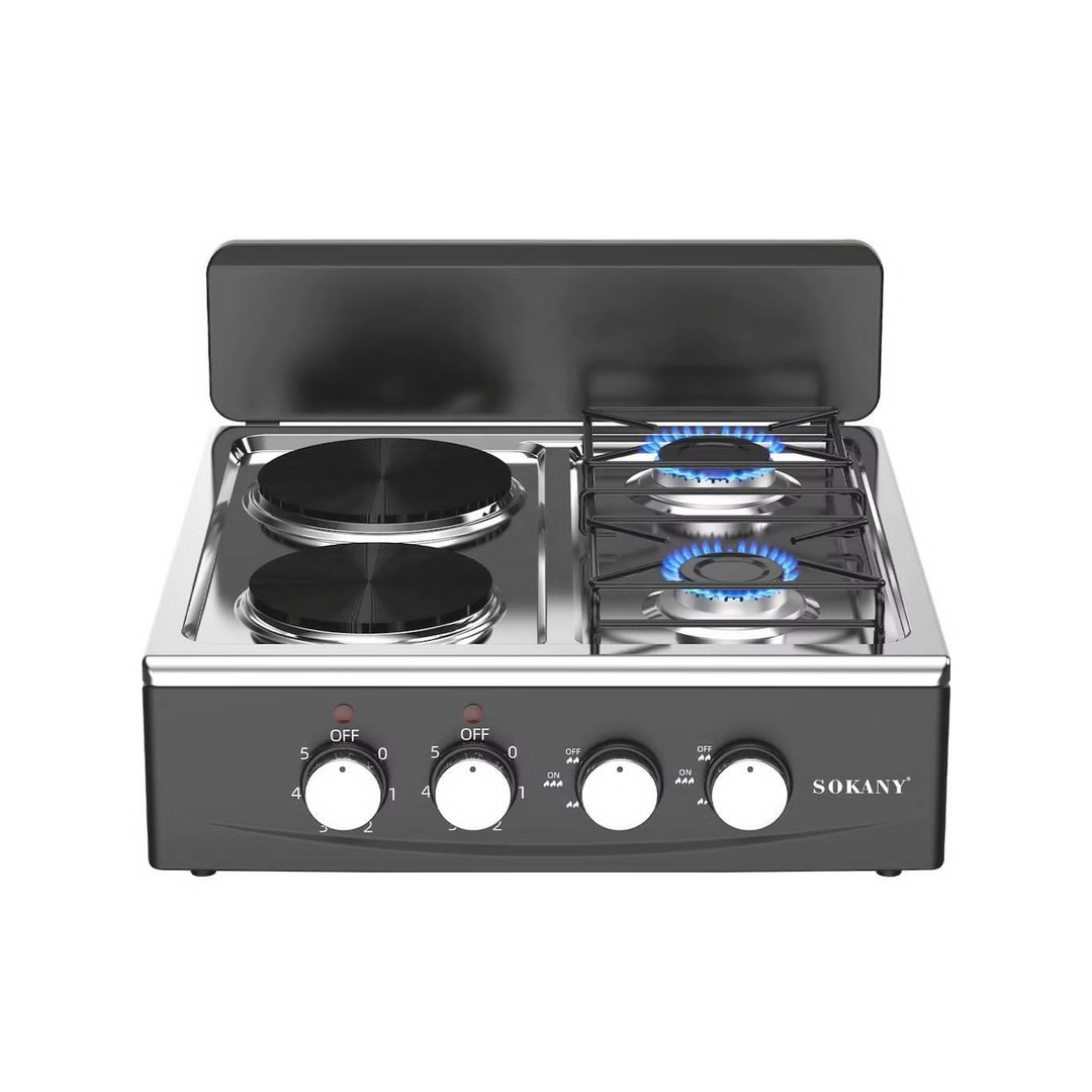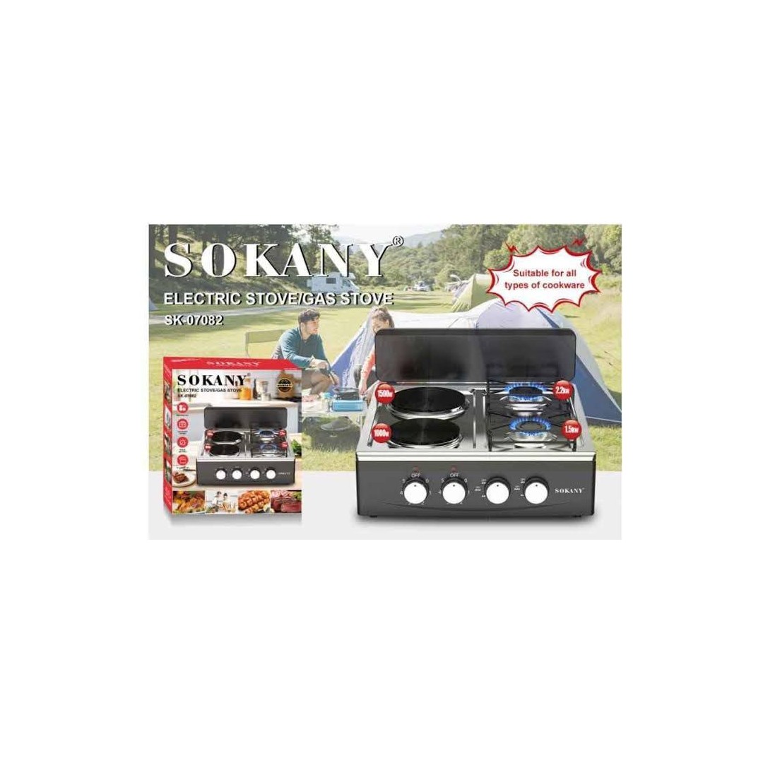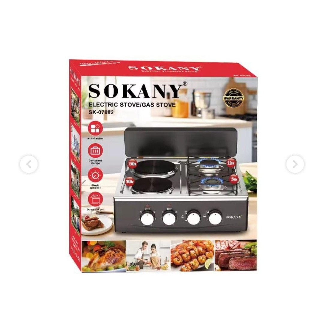 Sokany SK-07082 2-in-2 Dual Power Electric & Gas Stove is designed for modern kitchens and versatile chefs who need unparalleled cooking flexibility. Featuring two powerful electric burners (1000W & 1500W) and two efficient gas burners, this model ensures adaptable and precise meal preparation. Upgrade your setup today with Azzaman Household.