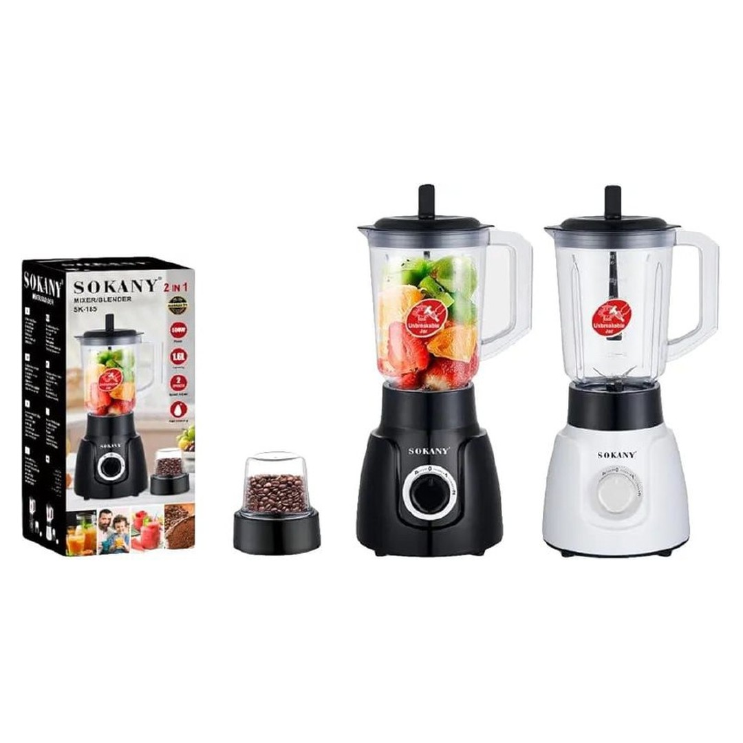 Sokany SK-185 2-in-1 Mixer Blender 500W with 1.6L Unbreakable Jar, Grinding Cup & Stainless Steel Blades