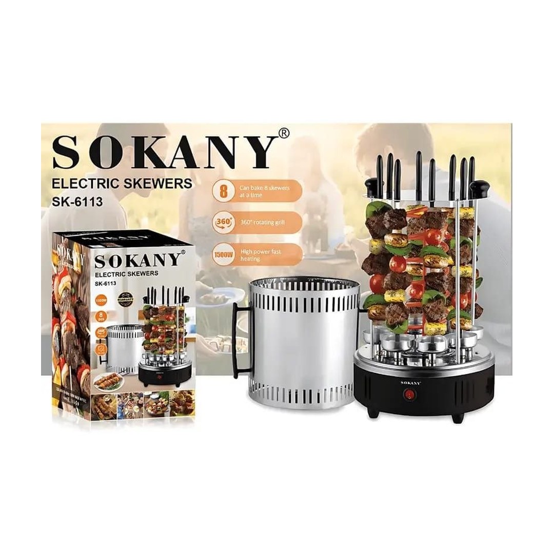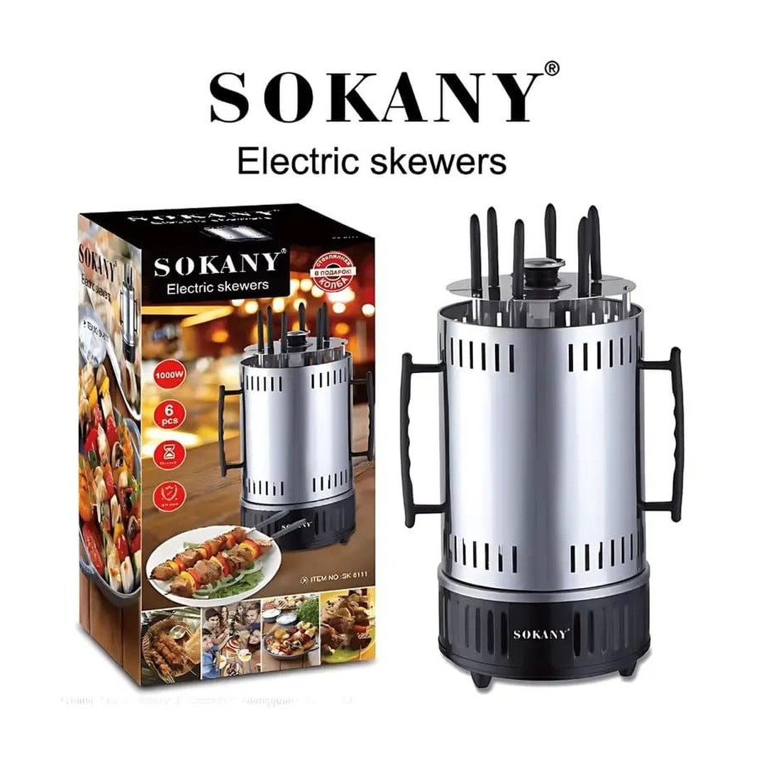Sokany Vertical Rotating 6-Skewer Electric Grill is designed for home cooks and BBQ enthusiasts who need effortless, smokeless indoor grilling. Featuring powerful 1000W heating and automatic 360° rotation, this model ensures perfectly cooked, delicious results every time. Upgrade your setup today with Azzaman Household.