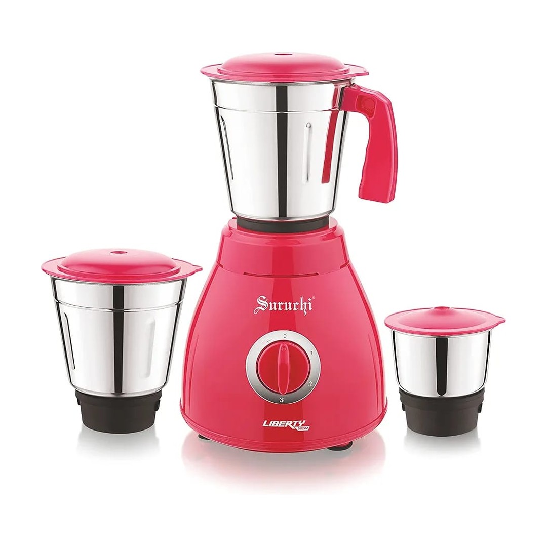 Suruchi New Liberty 3-Jar Mixer Grinder | 550W is designed for modern home chefs who need efficient and versatile kitchen power. Featuring a powerful 550W motor and three durable stainless steel jars, this model ensures consistently smooth and quick grinding results. Upgrade your setup today with Azzaman Household.