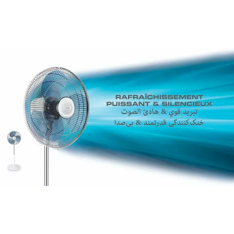 Tefal 16 Inch Oscillation Stand Fan with 3 Preset Modes | VF4410G2 is designed for individuals and families who need powerful, customizable, and intelligent cooling. Featuring its 16-inch powerful blades and three preset automatic modes, this model ensures optimal air distribution and comfort in any space. Upgrade your setup today with Azzaman Household.