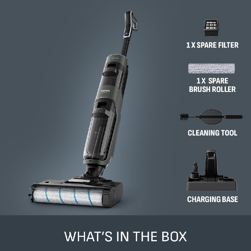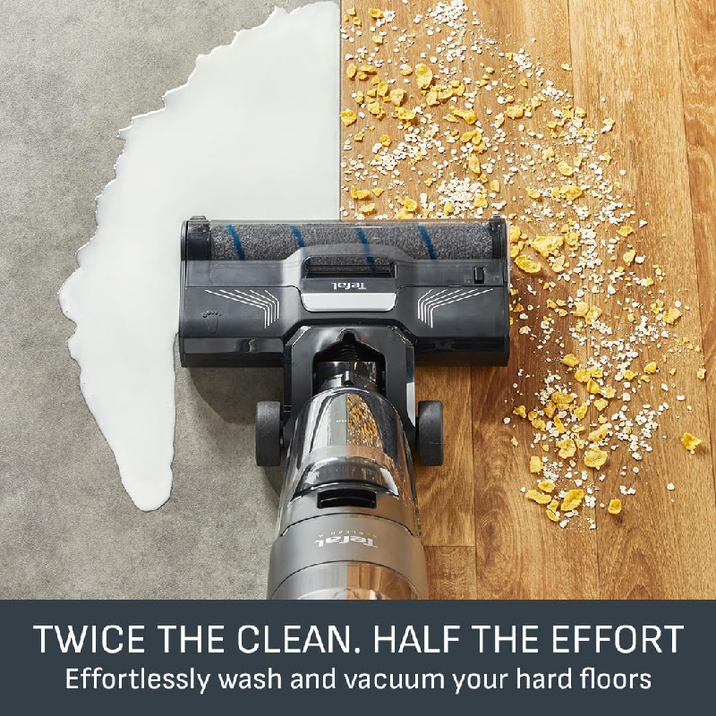 Revolutionize your cleaning routine with the Tefal X-Clean 2in1 Wet & Dry Cordless Vacuum Cleaner. This advanced Vacuum Cleaner delivers a comprehensive clean in a fraction of the time, seamlessly combining powerful vacuuming and effective washing in a single, efficient pass. Experience a spotless home as this wet and dry cordless vacuum effortlessly tackles all types of mess—from stubborn ground-in dirt to liquid spills, whether large or microscopic. Boasting an impressive run-time of up to 50 minutes on a single charge, it’s designed to cover expansive living spaces of up to 350 m², ensuring your entire home shines with unparalleled ease and efficiency.