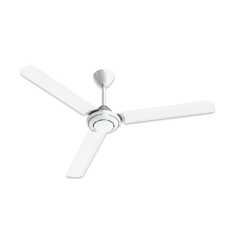 Elevate the comfort of your living space or office with the Tronic 56 Inch 75W Ceiling Fan. Engineered for optimal performance, this ceiling Fan combines powerful air circulation with advanced safety features. Its meticulously designed aerodynamic blades cut through the air silently, delivering a strong, consistent breeze that transforms any room into a cool, tranquil oasis. Beyond its impressive cooling capabilities, the Tronic Ceiling Fan integrates essential safety mechanisms, ensuring peace of mind with every use. Its elegant white finish, accentuated by subtle silver rings, adds a touch of modern sophistication, making it a perfect blend of functionality and style for any domestic application.