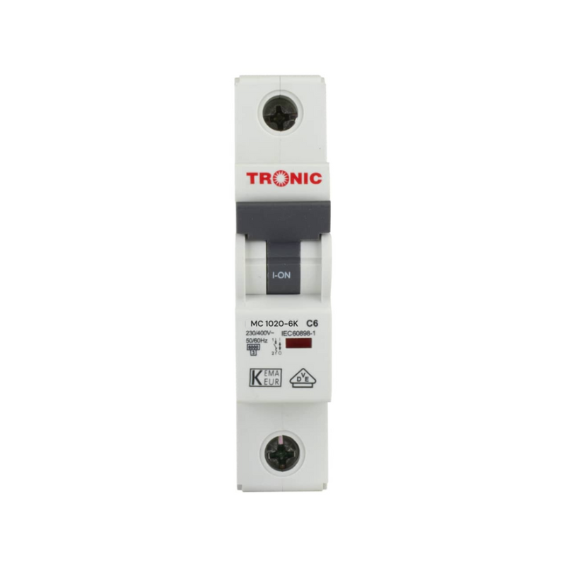 Tronic 1 Pole 20A 6K Miniature Circuit Breaker | 20A is designed for homeowners, contractors, and industrial users who need robust and efficient electrical protection. Featuring a 20A rated current and 6kA breaking capacity, this model ensures superior safety against overloads and short circuits. Upgrade your setup today with Azzaman Household.