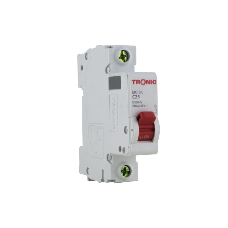 Tronic Single Pole 25 Amps 6K MC Miniature Circuit Breaker is designed for homeowners and electricians who need reliable electrical protection for their lighting and minor appliance circuits. Featuring a Single Pole 25 Amps capacity and a robust 6K Breaking Capacity, this model ensures safety and prevents damaging overloads. Upgrade your setup today with Azzaman Household.