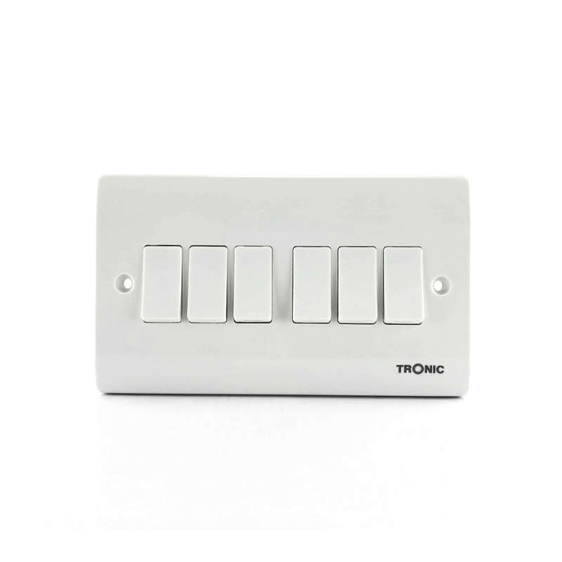 Elevate the functionality and aesthetic of your space with the Tronic 6 Gang 2 Way Standard Switch, available at Azzaman Household. This elegantly designed switch, part of the standard Tronic range, offers smooth-edged aesthetics that seamlessly blend into contemporary home and office interiors. Engineered for reliable performance, it provides versatile 2-way switching for up to six separate lighting circuits, giving you the convenience of controlling lights from multiple locations. Ideal for modernizing any room, this switch is a testament to quality electrical solutions. Explore more high-quality electrical components in our Switches category.