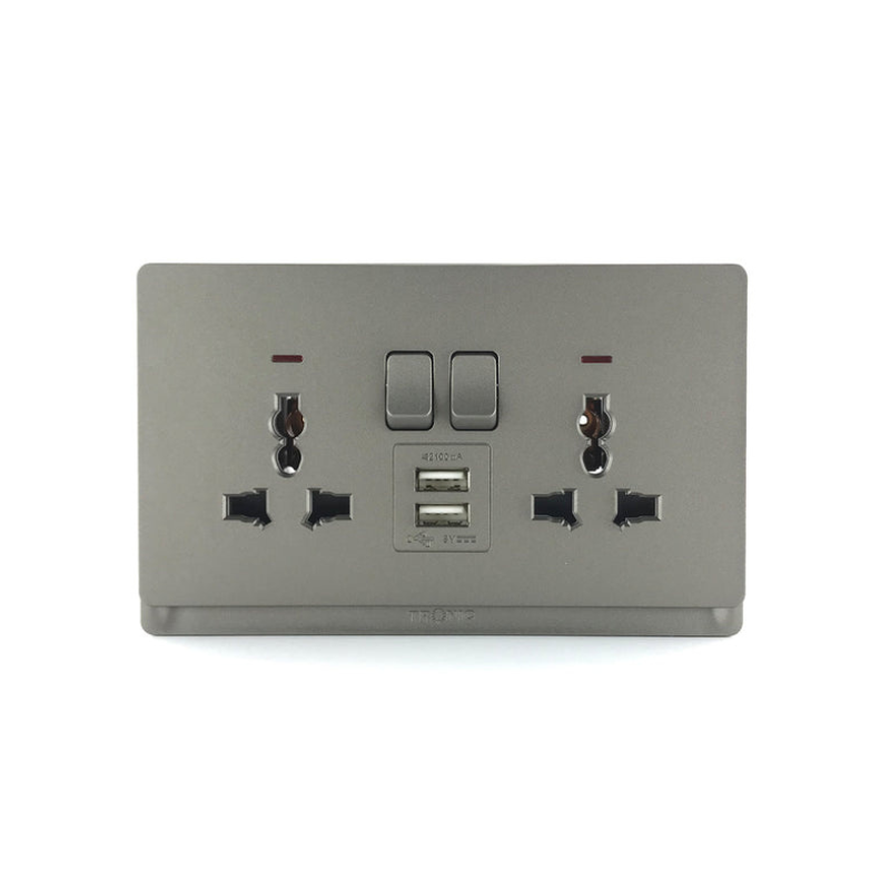 Tronic Universal Twin Socket Switch with USB 13 Amps | Neon Grey is designed for modern homeowners and professionals who need versatile power access and integrated device charging. Featuring a universal twin socket design (13A & 15A) and dual USB ports, this model ensures seamless integration and convenient power for all your devices. Upgrade your setup today with Azzaman Household.